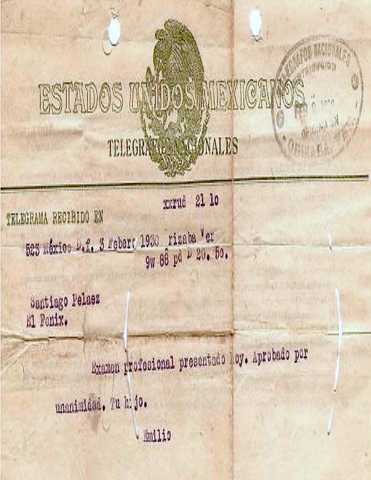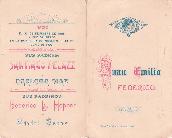 Documentaria – Emilio Peláez Díaz ACTAS Y OFICIOS actas de nacimiento 1909-Fe de Bautizo-Emilio Peláez Díazdescargar actas de defunción actas de matrimonio 084 0301 PELÁEZ DÍAZ EMILIO, OROZCO AMÉRICA. MATRIMONIO 1932 1201descargar testamentos créditos certificados credenciales pasaportes títulos 1930-Diploma-Emilio Peláez Díazdescargar epistolar remite 1930- Telegrama por Examen profesional Emilio Peláez Díazdescargar recibe testimonios Comparte esto: Compartir en X (Se abre en una ventana nueva) X Comparte en Facebook (Se abre en una ventana nueva) Facebook Me gusta Cargando...